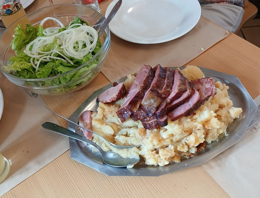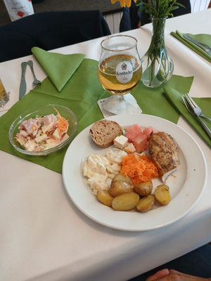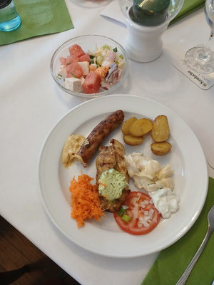 Leider konnten wir nicht im Garten sitzen, denn das Wetter war schlecht, aber es gab wieder super leckeres Essen bei Annelotte im Schützenhof.