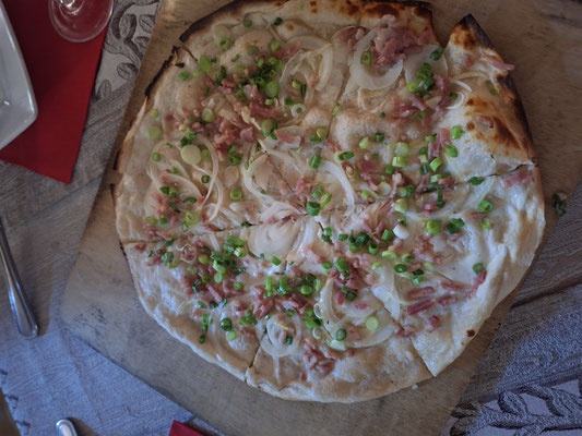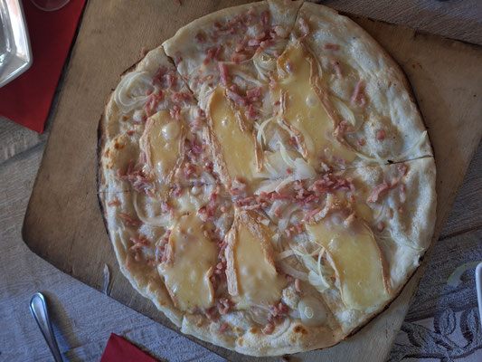 Rinderbrühe, Elsässische Tourta (Pastete mit Rind- und Hackfleisch), Roigabrageldi mit Rauchfleisch (Elsässische Bratkartoffelart), Salat, Münster- und Bergkäse, Dessert Eis, Heidelbeer- oder Käsekuchen. Zum Abschluss noch einen Kaffee