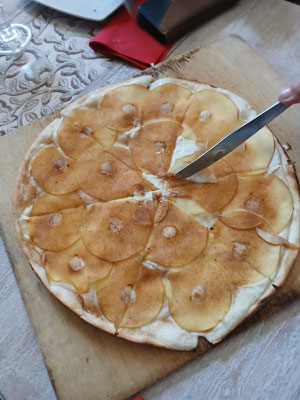 Der Mehlbüddel ist ein salziger, mit etwas Zitronenschale gewürzter und mit Eiern gekochter Mehlkloß, der eingeschlagen in ein Tuch, in einem Topf gart. Mir Rosinen oder Korinthen schmeckt er noch besser. Serviert wird er mit flüssiger Butter, Zucker und Zimt, Kasseler Nacken, Schweinebacke, Salzkartoffeln, Kirschsoße und Backobst. Es war ein tolles Essen und allen hat es wunderbar geschmeckt.