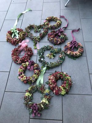 Anke Ruckert hat uns tatkräftig angeleitet und unterstützt. Wir haben wunderschöne Türkränze hergestellt. Es hat wieder sehr viel Spaß gemacht.