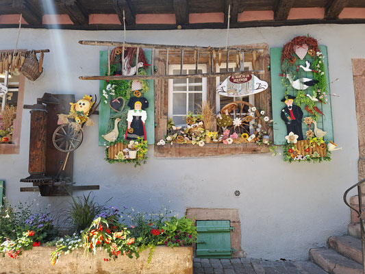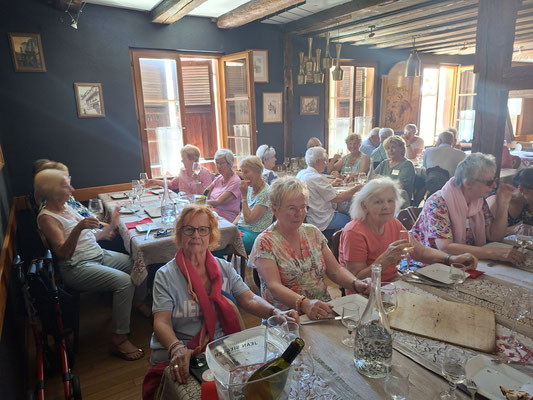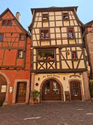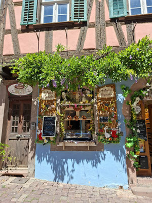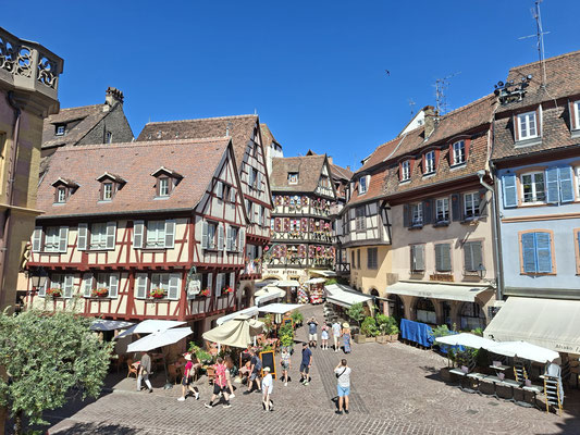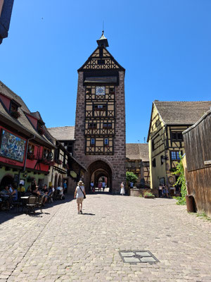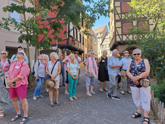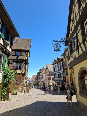 Am 29.06.2025 machten wir einen Ausflug nach Riquewihr, Ribouivillé und Kaysersberg auf der romantischen "Elsässer Weinstraße". Prächtige Fachwerkhäuser, Türme, Torbögen und alte Mauern, schmale Gassen und malerische Innenhöfe mit Kopfsteinpflaster, hübsche Cafés, Restaurants und urige Weinstuben: Für viele Besucher zählt Riquewihr zu den attraktivsten Orten an der Elsässischen Weinstraße. In einem urigen Restaurant in Riquewihr gab es für uns ein elsässisches Flammkuchen-Essen, mit einem Riesling und viel Wasser. Es war wieder mal sehr heiß.