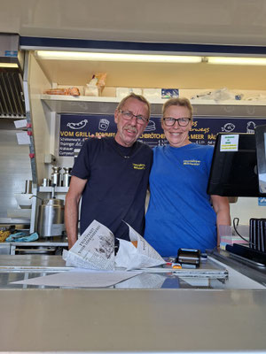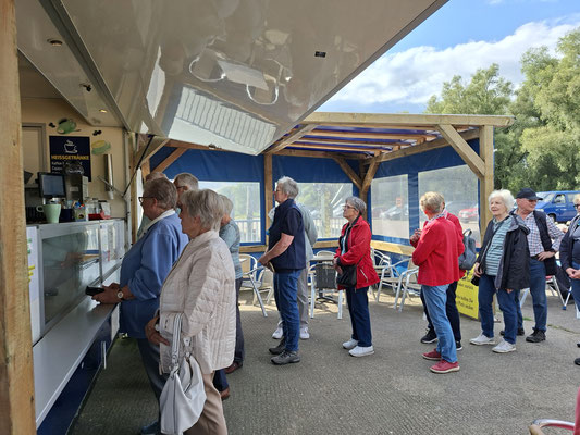 Zurück im Hafen gab es für alle ein Fischbrötchen (freie Auswahl) bei den Eheleuten Bock an der "Haseldörper Röökerkist". Die waren super super lecker.