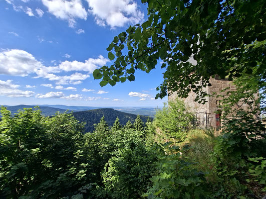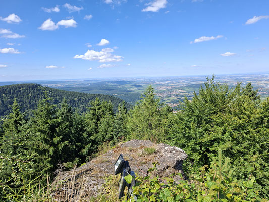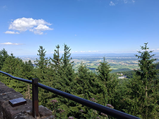 Später fuhren wir zum Odilienberg. Dort steht auf einer Höhe von 763 m ü.NN das Kloster Hohenburg. Es wurde im 7. Jahrhundert errichtet und bis ins Mittelalter als Frauenkloster genutzt. Es ist heute der bedeutendste Wallfahrtsort im Elsass. Das Kloster führt kirchliche Seminare durch und unterhält einen Hotelbetrieb. Von der Terrasse des Klosters und vom Felsen am Südrand sieht man ins Oberrheinische Tiefland und zu den Höhen des Schwarzwaldes. Ein wunderschöner Ausblick.
