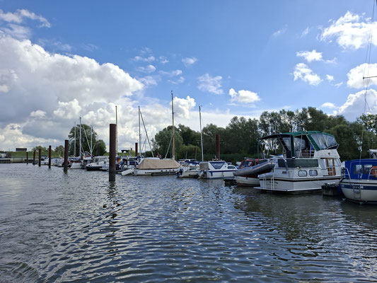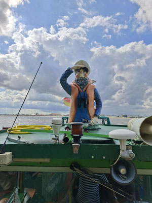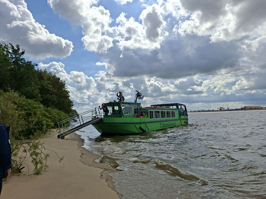 Alle Mann an Bord, nun ging es mit dem Boot auf die andere Seite der Elbe, nach Stadersand.