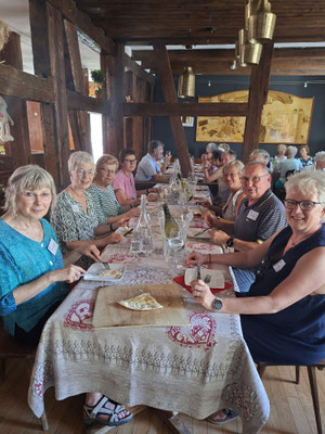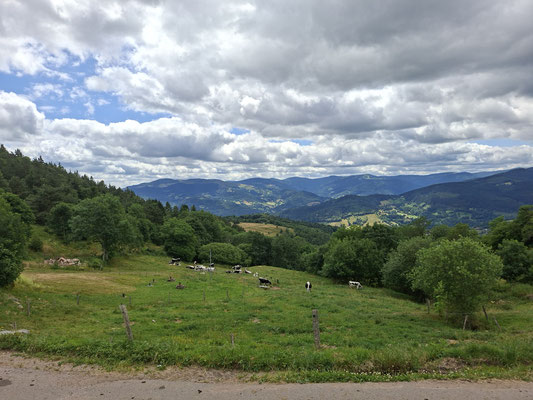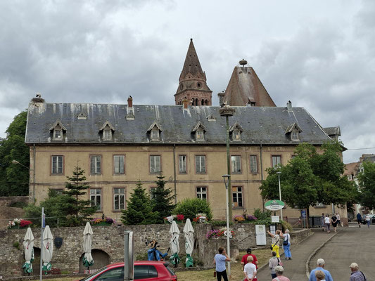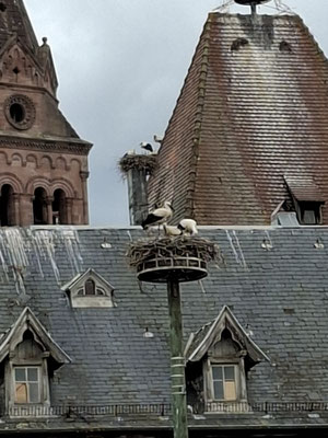27.06.2025 Unser Gästeführer Eduard begleitete uns 3 Tage bei den Ausflügen. Heute führt unser Weg zuerst in die Kleinstadt Münster in Frankreich. Es ist die "Stadt der Störche". Sie nisten auf Dächern und Kirchtürmen. Jedes Jahr kommen ca. 300 Störche hierher um ihre Jungen aufzuziehen. Nach einem kurzen Rundgang um die Kirche und ein paar Fotoaufnahmen ging unsere Fahrt weiter durch die wunderschöne Landschaft der Zentralvogesen. Auf der "Col de la Schlucht" ein 1139 m hoher Pass fuhren wir zur "Feme Auberge", das ist ein Bergbauernhof mit Bergkäserei und Restaurantbetrieb. Es gab ein "Melkeressen".