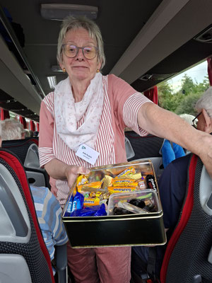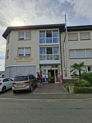 Nach 12,5 Stunden und 791 km haben wir unser Ziel, das Hotel Anika in Neuenburg am Rhein, erreicht. Anke versorgte uns die fünf Tage mit Naschis im Bus.